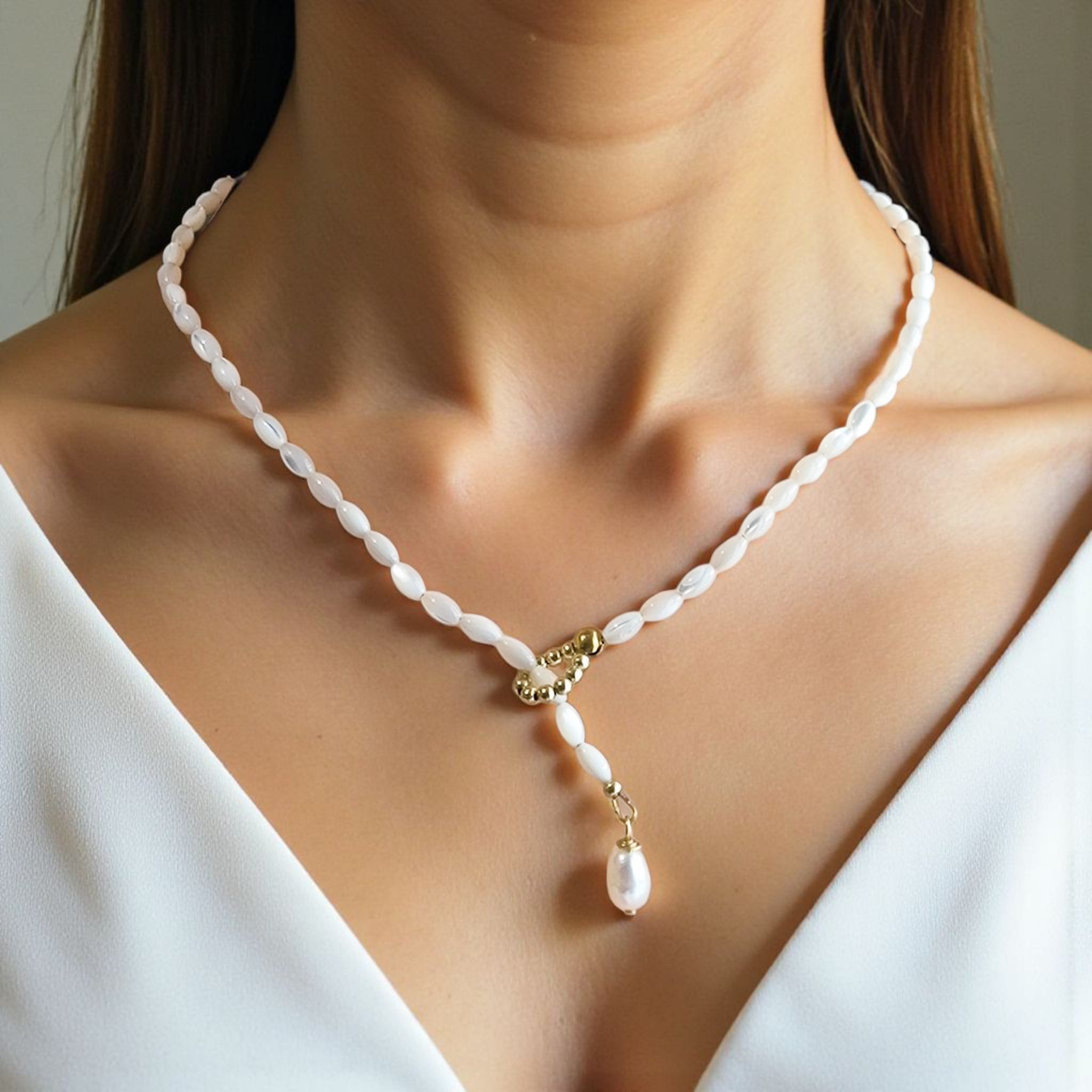 ✨ Élégance naturelle grâce aux perles en nacre et à la perle d’eau douce finale