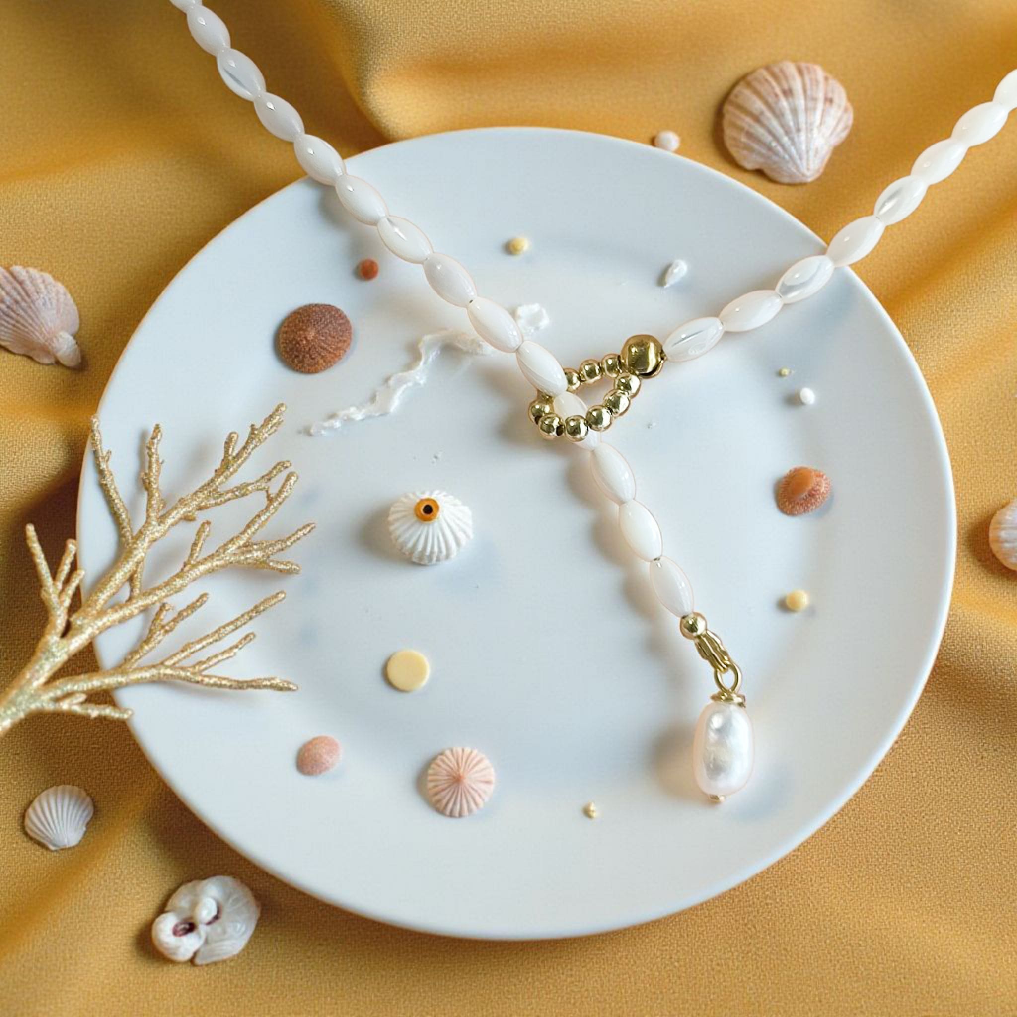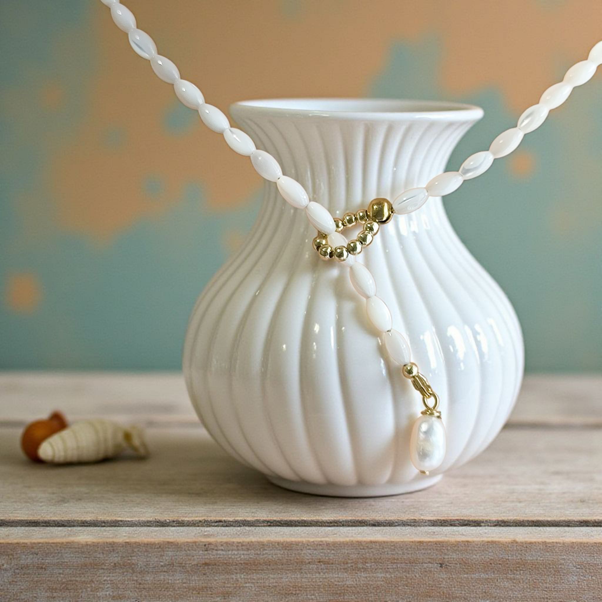 Collier Nacre Doré & Perle d’Eau Douce – Élégance NaturelleCollier Nacre Doré & Perle d’Eau Douce – Élégance Naturelle